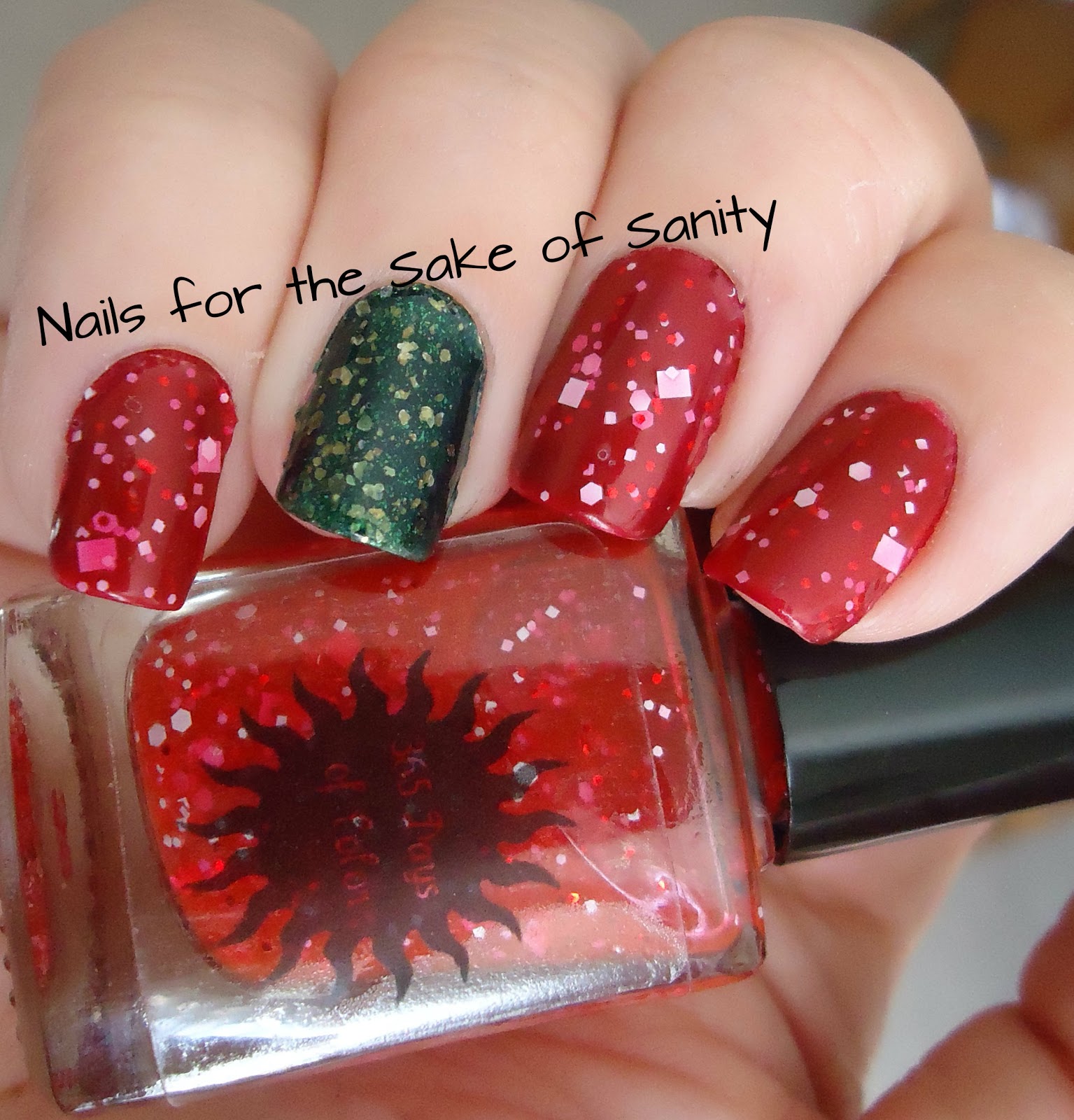 I loved this mani for Christmas! And I love Santa Baby so much, I even think it could work for Valentine's Day. I should have showed it to you by itself - it's a fairly sheer jelly, but there's lots it could be layered over!